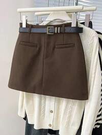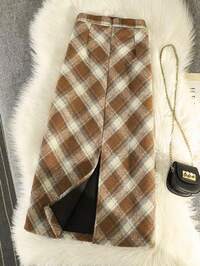 FrancliaFranclia Women's Brown Plaid Wool Midi Skirt, New Autumn/Winter Style, Fashionable High-Waisted, Slimming A-Line, Bodycon, Retro, Thick Plaid Mini Skirt,Women's Mini Skirt.Winter For Women,Christmas,New Year ,White For New Year's Eve,Party,Beach,Elegant,Casual For Women,Romance, Valentine's Day, Dating,Graduation Season Attire, Fashionable Casual Commuter Wear, Business Office Wear, Versatile And Stylish Everyday Casual Wear, Urban Teacher's Professional Attire