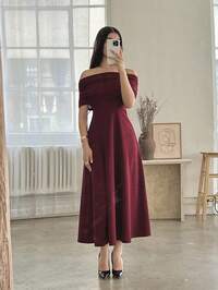 Andrea Bello Women's Elegant Minimalist Refined Romantic Fashion Party Vacation Commute Off Shoulder High Waist A-Line Long Dress, Grey Maxi Dress