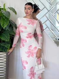 Andrea Bello New Romantic Floral Mesh Print Sexy Backless Draped Neck Dress With Extra Long Straps,Boho Clothes Women