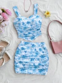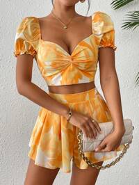SoleiaSoleia Women's 2-Piece Set, Casual Vacation Western Beach Wedding Guest Attire, Back To School, Graduation, Brunch, St. Patrick's Day, Spring Break, Easter, Music Festival, Elegant Bohemian Tropical Halter Tie Asymmetric Hem Brown Print, Autumn/Winter