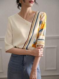SHEIN Clasi Women's Printed Colorful Casual Daily Shirt,Three Quarter Sleeve Tops