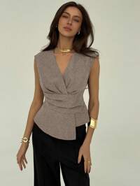 DAZY V-Neck Sleeveless Casual Wrinkle-Resistant Women Business Casual Blouse,Short Sleeve Tops