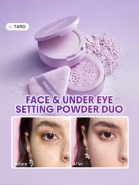 SHEGLAM Insta-Ready Face & Under Eye Setting Powder Duo-Taro Oil-Control Poreless Flawless Full Coverage Lightweight Pressed Powder Loose Setting Powder Purple Brightening Smoother-Looking Setting Powder Face Makeup Brand Beauty Makeup Face Paint Cosmetic For Women Girls Perfect For Winter Ideal For Y2K Fancy Fashion Suitable For Birthday Gift Party Ready Best Color