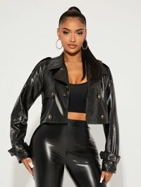 SHEIN SXY Versatile Black PU Motorcycle Jacket, Sexy & Stylish, Autumn/Winter