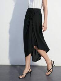 Maija Women's Fashionable Asymmetrical Printed Drawstring Design High Slit Skirt